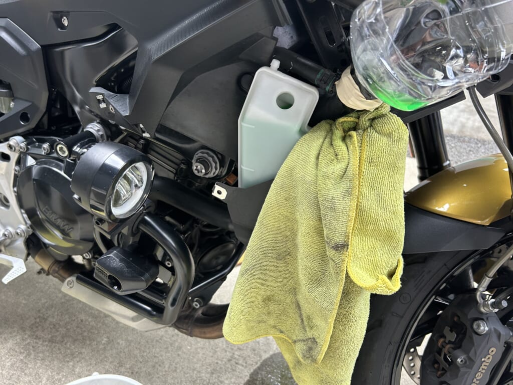 F900XRのクーラント交換を行うにあたって、工具以外に用意することを推奨するものは以下の通り
